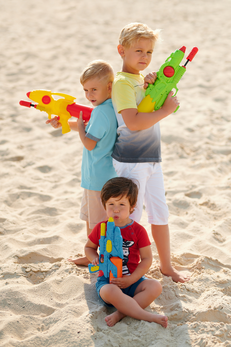 Letnji dan bez bar jedne vodene borbe je kao plaža bez peska — nepotpun. Pištolji na vodu i razne vodene igračke unose dozu haotične radosti u svaki kutak plaže. I nije važno ko je pobedio, jer svi izlaze iz te igre mokri, nasmejani i puni priča za prepričavanje.