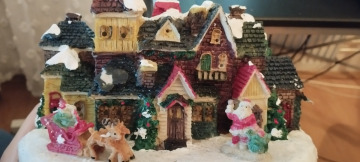 Ukrasna kućica koja svetli, 2 vrste, na 3xAAA baterije-nisu priložene. Izrađena od polyresina. Približne dimenzije 17x22x10 cm, u zavisnosti od modela.