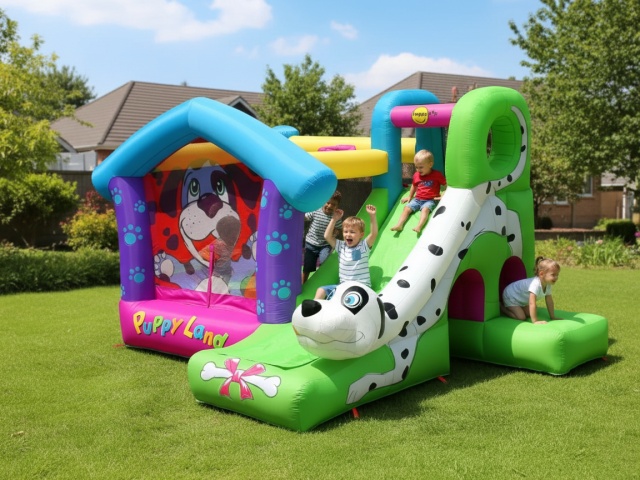 Unesite radost, smeh i neograničenu zabavu u svoje dvorište uz Happy Hop Puppy Land dvorac na naduvavanje – šareni XXL dvorac sa preslatkim 3D kucom koji će momentalno osvojiti decu. Idealan je za svakodnevnu igru, rođendane, porodična okupljanja i manje proslave, pružajući satima bezbedne i aktivne zabave na otvorenom.